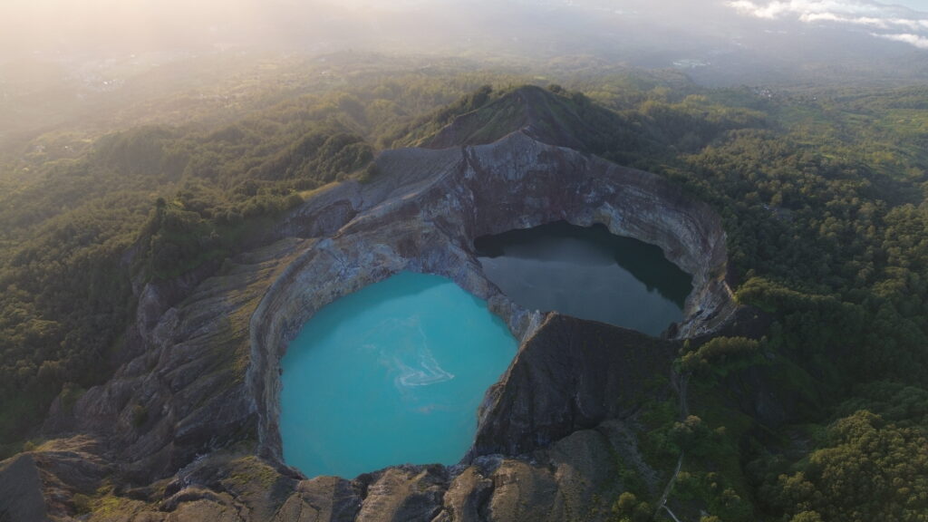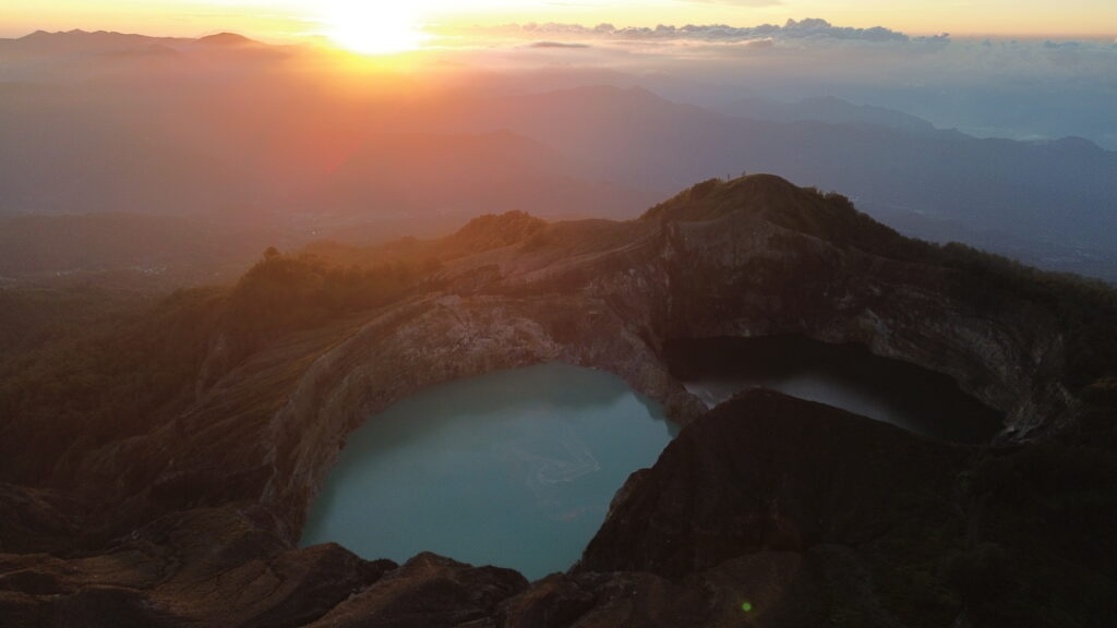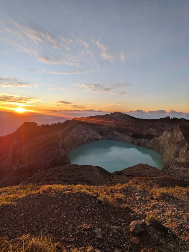 Le levé de soleil est magique ! On découvre d’abord un premier lac, le Tiwu Nuwa Muri Koo Fai…
