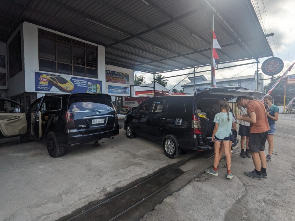 Nous aurions aimé faire le plein sur le retour mais les stations essence sont vides et il y a déjà des camions garés pour en prendre demain dès 7h. Ça s’annonce mal pour nous… De retour à l’hôtel, nous préparons la suite du voyage au son des répétitions des événements qui auront lieu le 17 juillet pour les 80 ans de l’indépendance de l’Indonésie. On devait faire une croisière de 3 jours jusqu’à Lombok mais tout semble complet et cher. Les avions se remplissant rapidement, nous choisissons finalement de réserver un vol. Les Pernot de leur côté décident de persévérer dans leurs recherches.