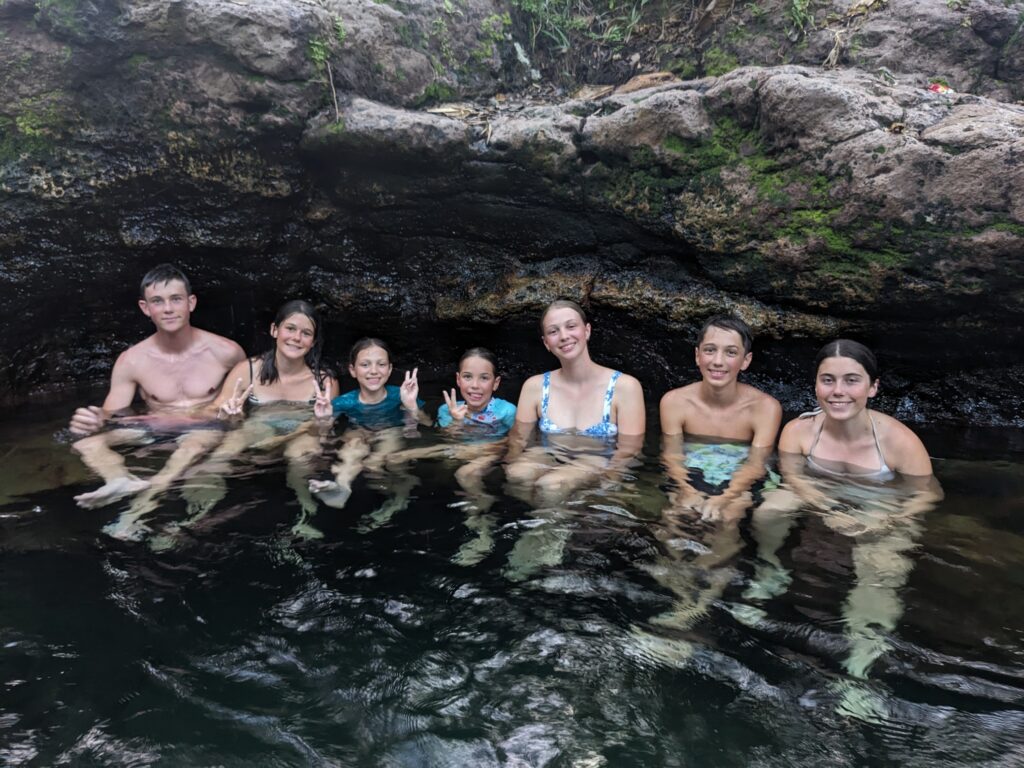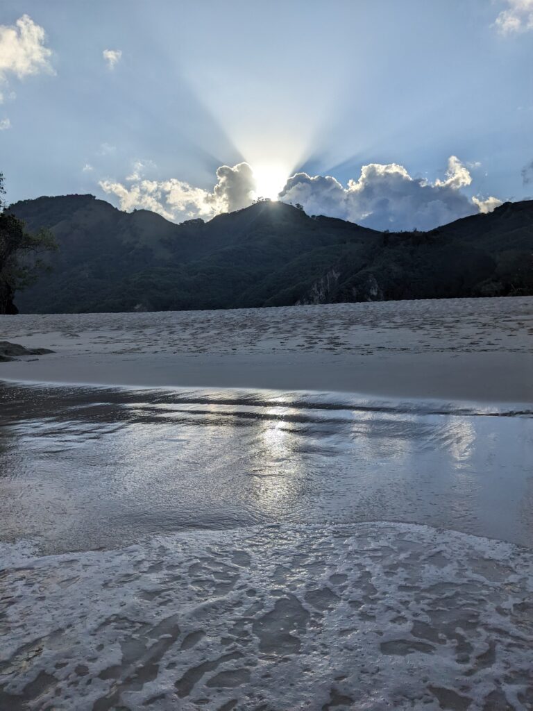 Choisissez entre le petit torrent avec courant à 40-45°C ou les petits bassins à 50-60°C. Encore faut-il arriver à y entrer, surtout quand tu as pris des coups de soleil la veille 🙈