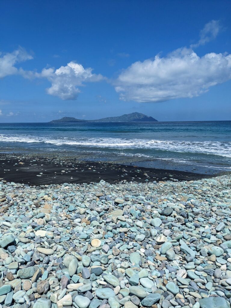 Passé Ende nous longeons la côte avec ses belles plages de sable noir et nous nous arrêtons à l’une de celle où on trouve des galets bleus !