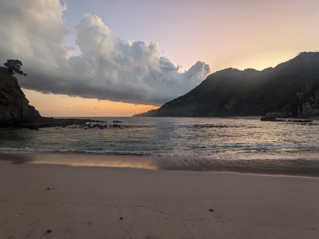 On y arrive vers 16h. Deux plages sont de part et d’autre d’un gros rocher sur lequel on peut monter pour les voir de haut.