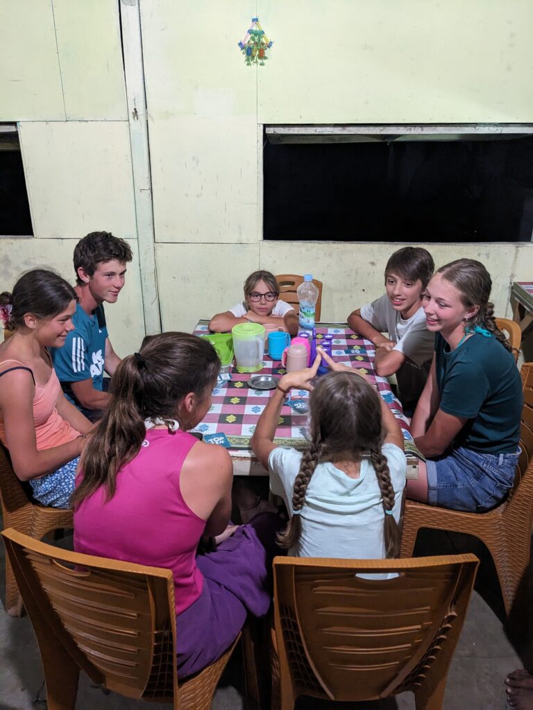 On repère un logement sur google maps pour nous 6 qu’on réserve à distance via WhatsApp. La route est pleine de lacets et de trous, il pleut et on peste contre les vitres teintées car la nuit tombe. Et pour couronner le tout, on arrive dans un homestay minable : 2 petits lits doubles alors qu’il nous avait dit qu’on pouvait y dormir à 3. On repart donc bredouille mais on trouve facilement un autre homestay charmant, propre et avec plusieurs chambres dispo donc on peut être avec nos amis. Cool !