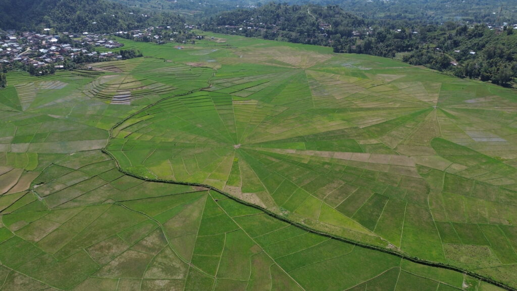 Nous partons ensuite voir une particularité de la région à 15km de Ruteng : les rizières en forme de toile d’araignée. On commence par se balader au milieu des rizières, le but est d’essayer de rejoindre le centre d’un des cercles (merci au drone pour le coup de main).