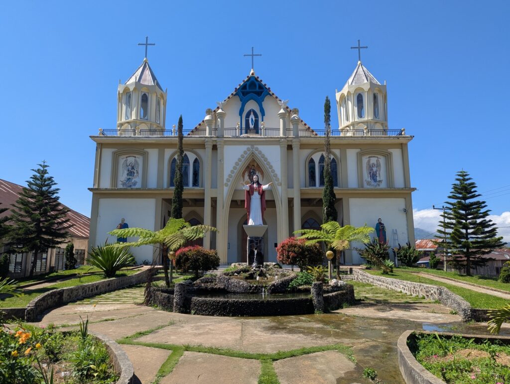 Sur le retour nous passons par l’immense église catholique Marie Reine de l’Univers (Gereja katolik Maria Retu Semesta Alam) dans le petit village de Langa au sud de Bajawa.