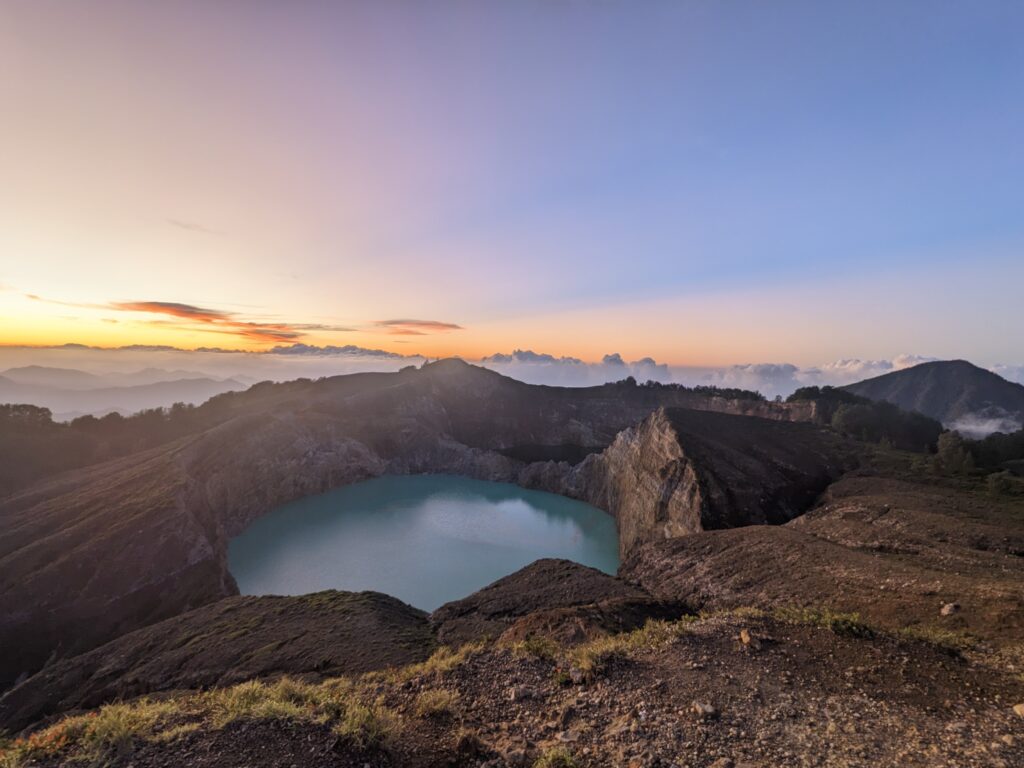 Le levé de soleil est magique ! On découvre d’abord un premier lac, le Tiwu Nuwa Muri Koo Fai…