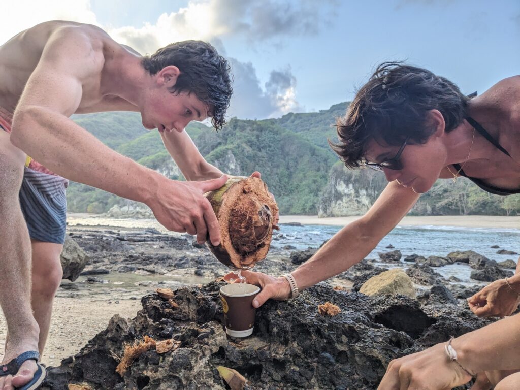 La baignade est bonne, ainsi que les noix de coco trouvées sur place !