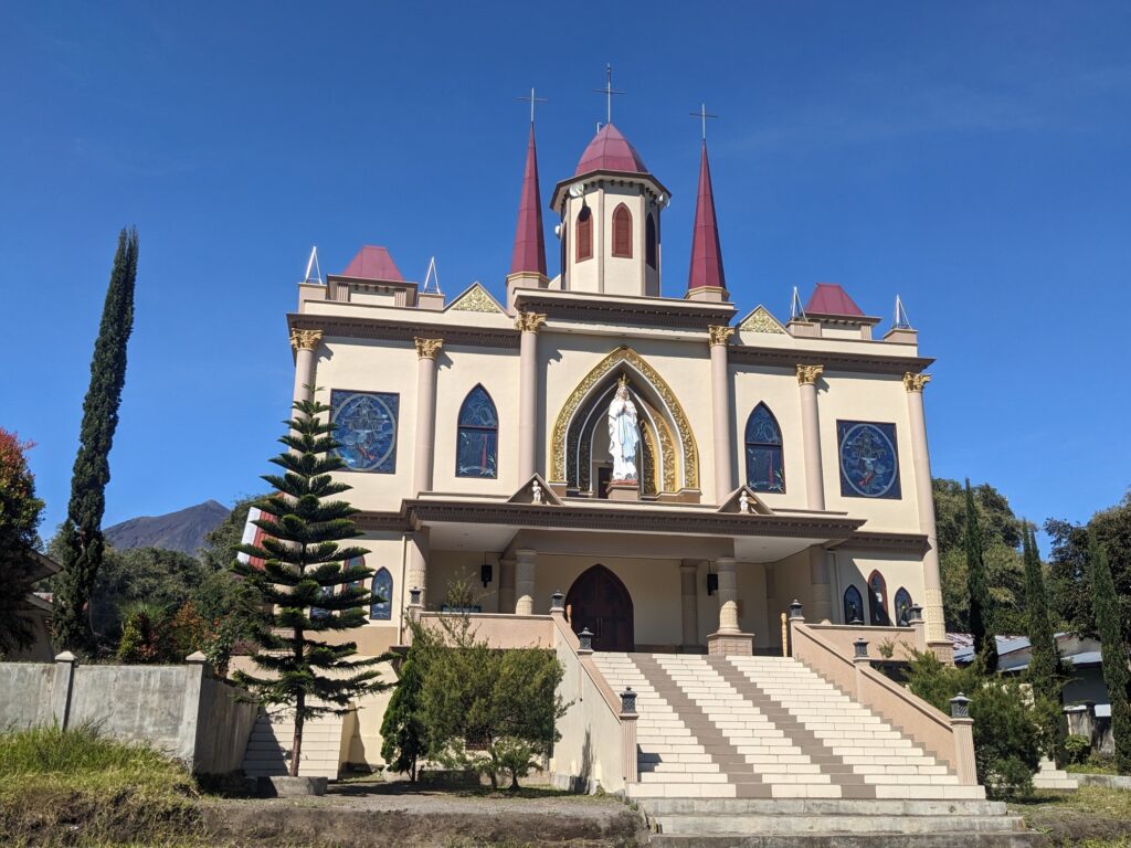 Sur le retour nous passons par l’immense église catholique Marie Reine de l’Univers (Gereja katolik Maria Retu Semesta Alam) dans le petit village de Langa au sud de Bajawa.