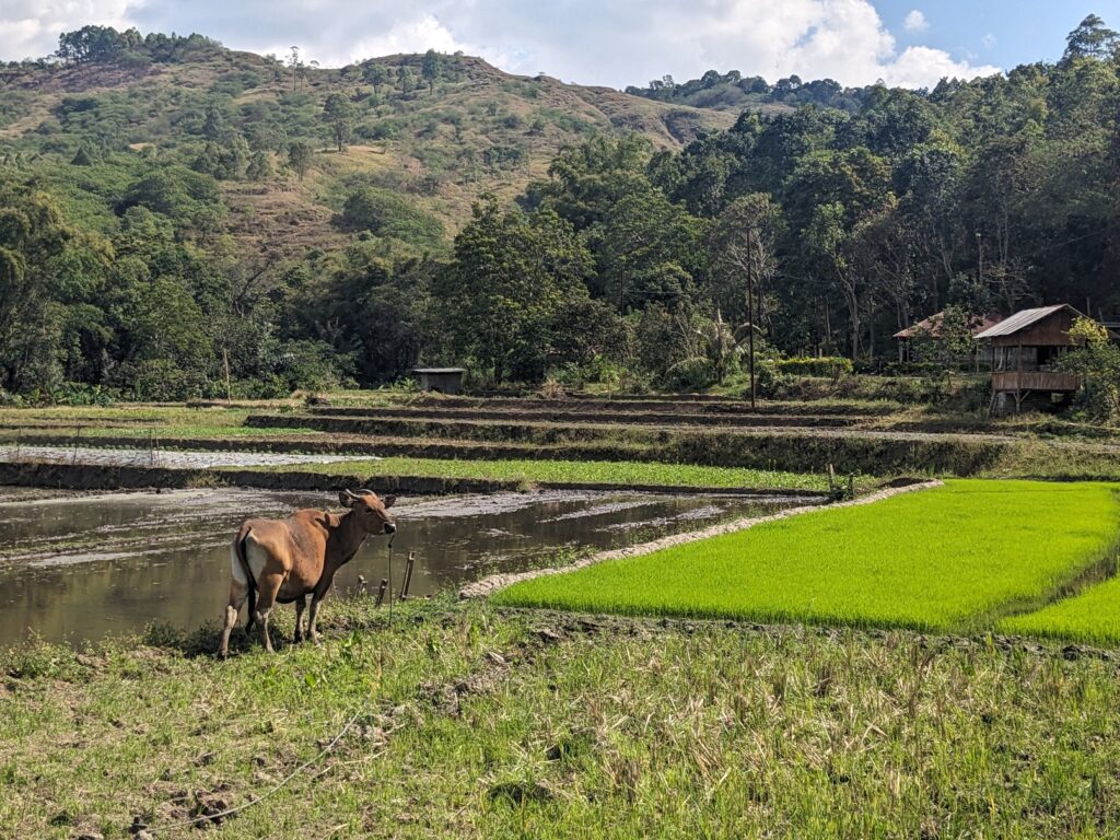 Sur la route de la cascade on s’arrête admirer les rizières en terrasse.