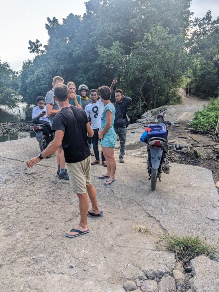 Il nous reste encore un peu plus de 3h de route pour 56 km. On a décidé de passer par la côte car c’est normalement moins long que par Ruteng et cela nous rapproche plus de notre excursion de demain au Waz Rebo. On sait qu’il y aura des parties de routes non revêtues un peu difficiles mais on ne s’attendait pas à ça…