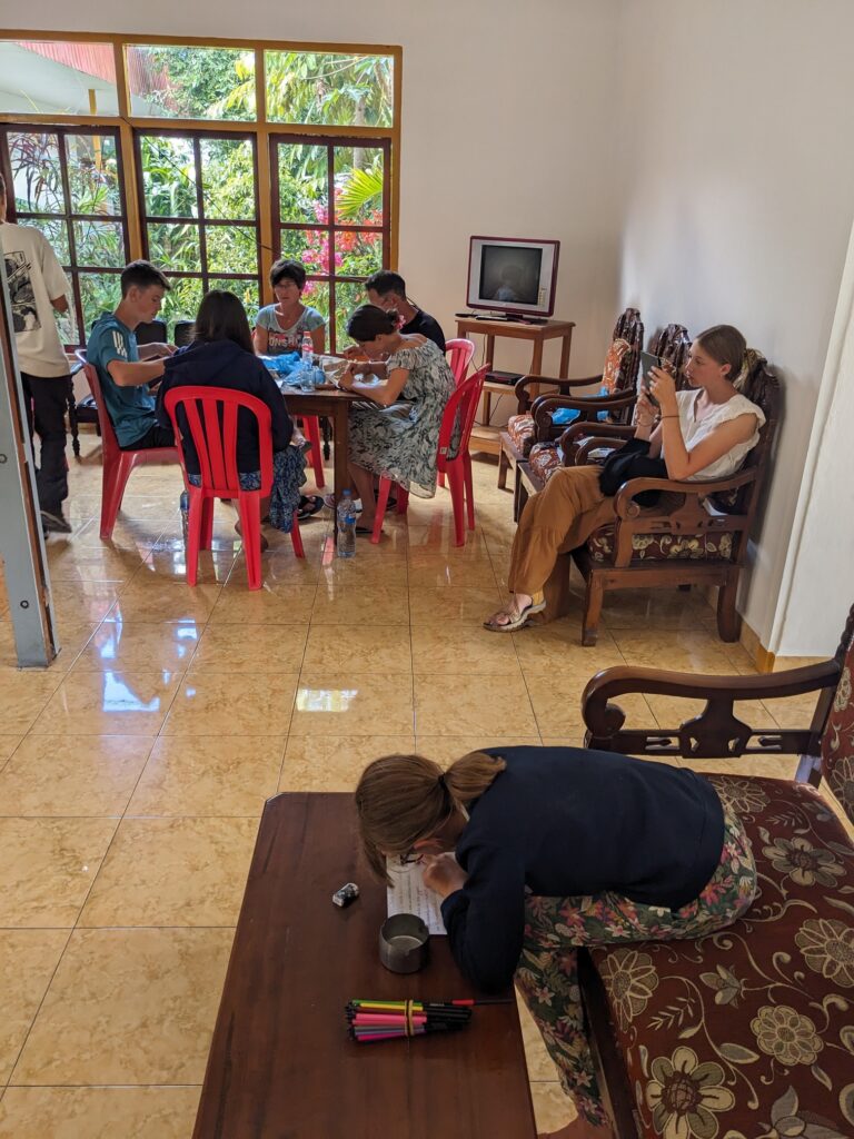 On repère un logement sur google maps pour nous 6 qu’on réserve à distance via WhatsApp. La route est pleine de lacets et de trous, il pleut et on peste contre les vitres teintées car la nuit tombe. Et pour couronner le tout, on arrive dans un homestay minable : 2 petits lits doubles alors qu’il nous avait dit qu’on pouvait y dormir à 3. On repart donc bredouille mais on trouve facilement un autre homestay charmant, propre et avec plusieurs chambres dispo donc on peut être avec nos amis. Cool !