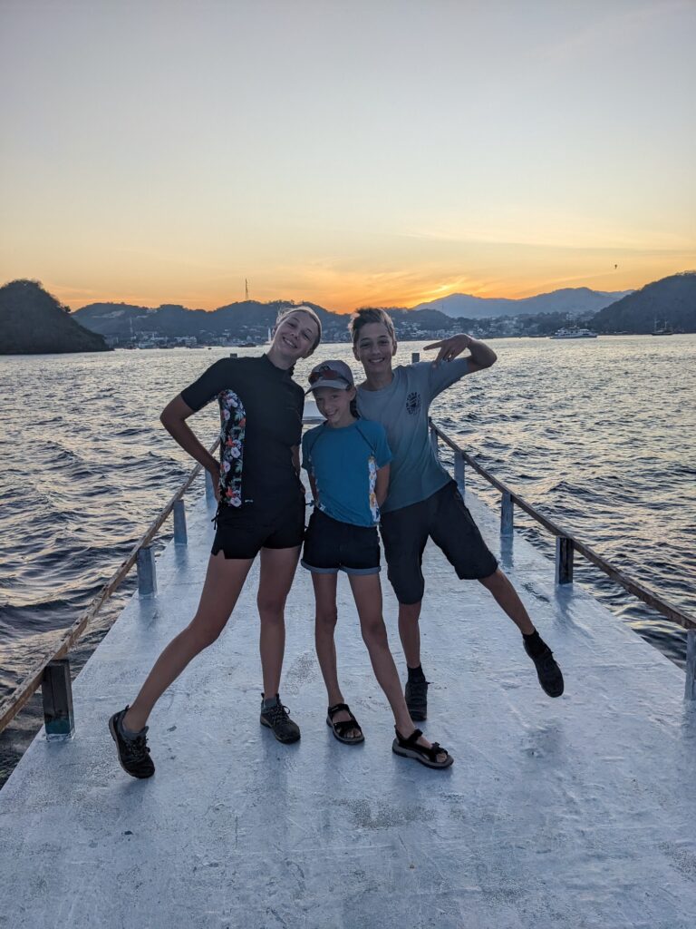 Le soir les parents prennent un petit moment pour aller voir le coucher de soleil à Pantai Pede, juste à côté de notre hôtel.