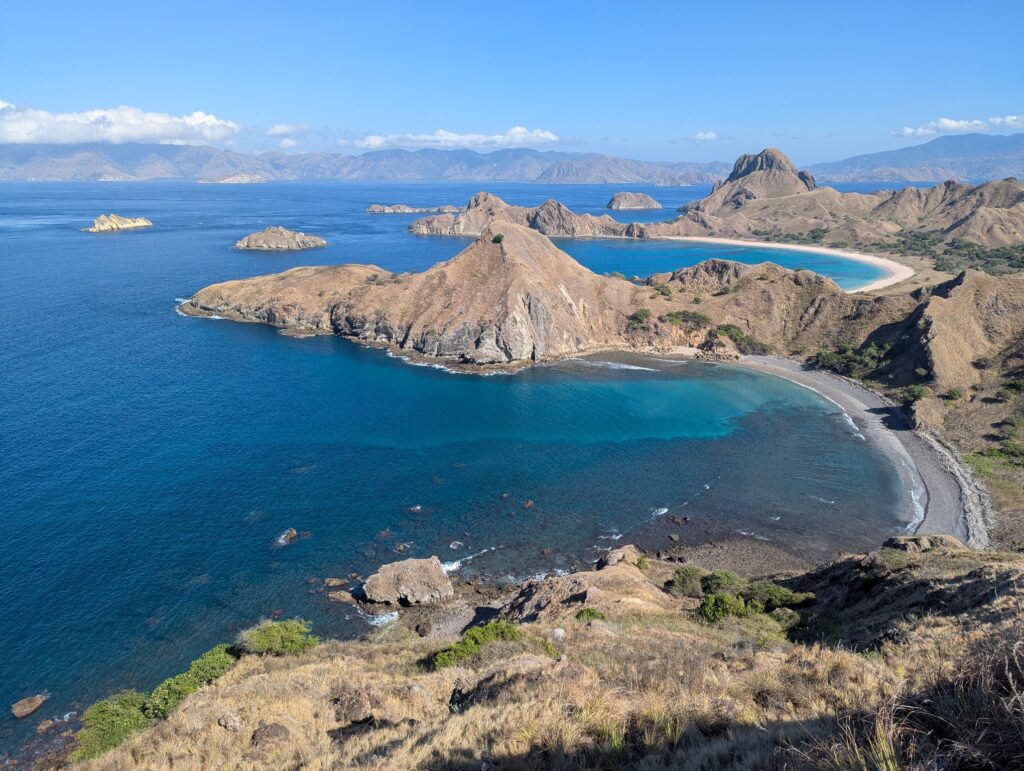 2h30 de navigation plus tard on arrive sur l’île de Padar. On s’est fait doubler par pas mal de speed boat vers la fin du voyage, on pensait qu’ils y arrivaient plus tôt et seraient déjà tous repartis et qu’on pourrait ainsi éviter la foule… C’est raté !