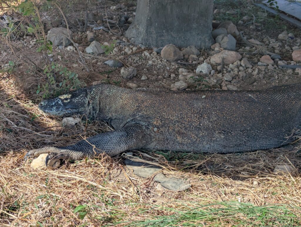 Et cette fois on a vraiment un ranger qui nous fait visiter le parc (on a même réussi à en négocier 1 seul au lieu de deux), on fait donc la connaissance d’Ardiansyah qui est très sympa et a plaisir à répondre à toutes les questions des enfants sur les dragons de Komodo. On apprend plein de trucs, notamment sur la reproduction. Les bébés vivent 3 mois dans les arbres après leur naissance pour éviter de se faire manger par d’autres dragons. Ceux-ci mangent aussi les œufs couvés par leurs congénères. Mais les mamans ne mangent pas leurs propres œufs, ouf !