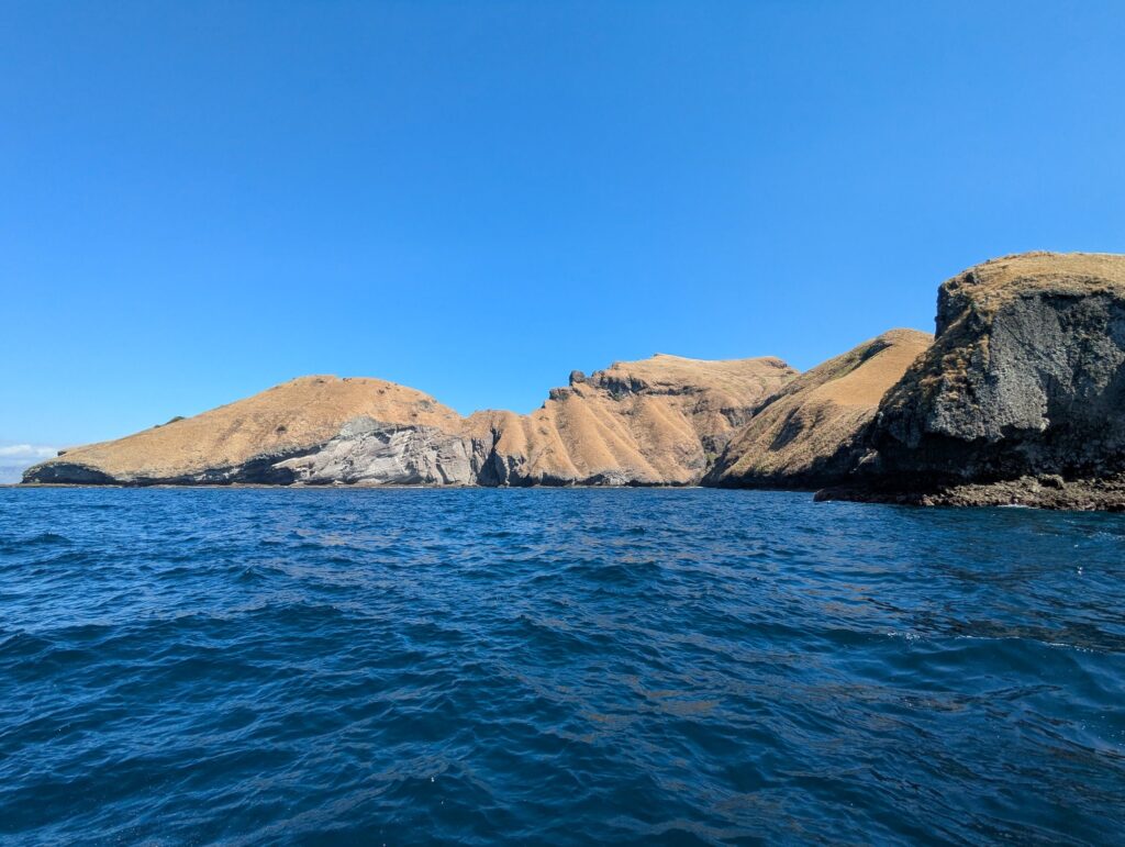 2h30 de navigation plus tard on arrive sur l’île de Padar. On s’est fait doubler par pas mal de speed boat vers la fin du voyage, on pensait qu’ils y arrivaient plus tôt et seraient déjà tous repartis et qu’on pourrait ainsi éviter la foule… C’est raté !