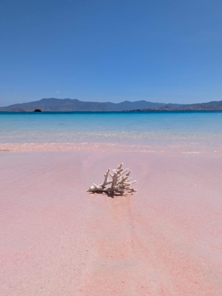 La couleur rose vient de micro-organismes appelés “Foraminifera” qui produisent un pigment rouge sur les coraux. Quand des petits morceaux de coraux se mélangent au sable blanc, cela donne donc cette couleur rose.