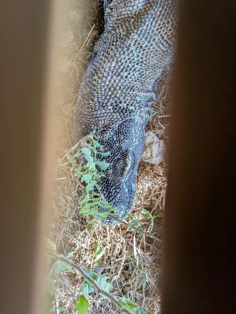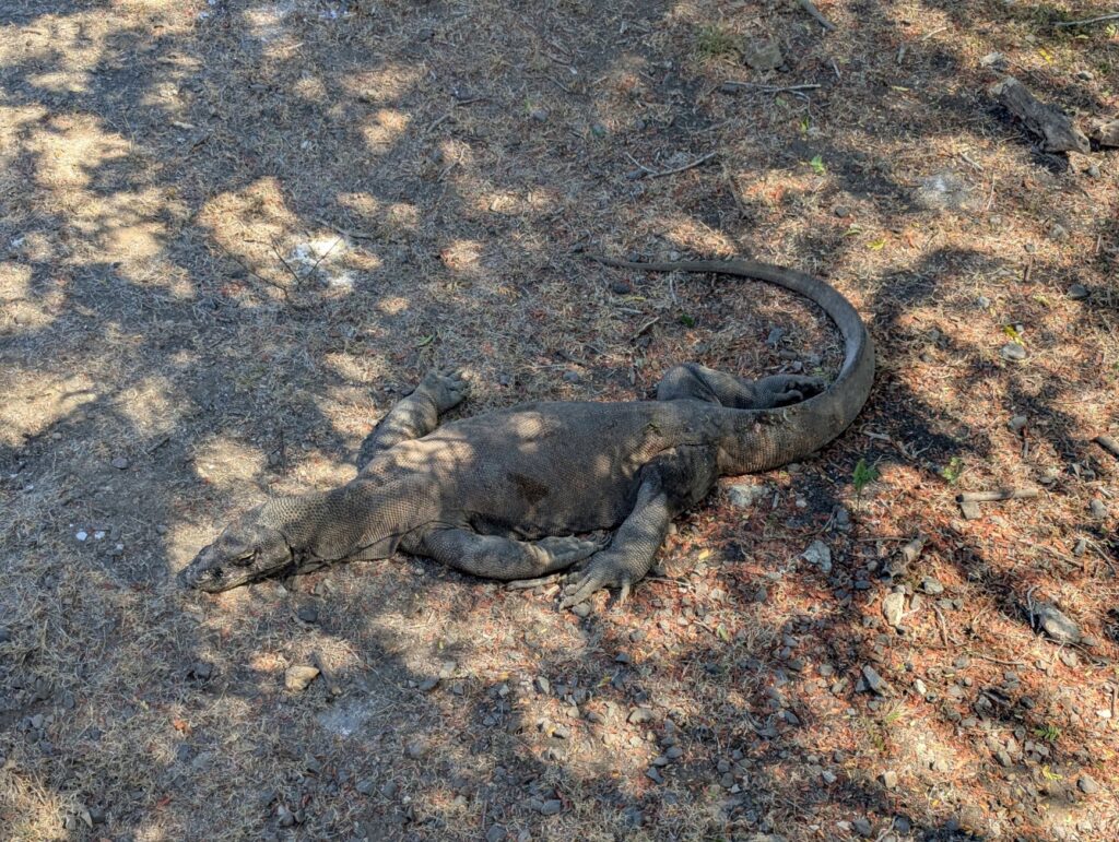 Et cette fois on a vraiment un ranger qui nous fait visiter le parc (on a même réussi à en négocier 1 seul au lieu de deux), on fait donc la connaissance d’Ardiansyah qui est très sympa et a plaisir à répondre à toutes les questions des enfants sur les dragons de Komodo. On apprend plein de trucs, notamment sur la reproduction. Les bébés vivent 3 mois dans les arbres après leur naissance pour éviter de se faire manger par d’autres dragons. Ceux-ci mangent aussi les œufs couvés par leurs congénères. Mais les mamans ne mangent pas leurs propres œufs, ouf !